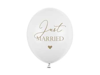 Balony 30cm, Just Married, P. Pure White (1 op. / 6 szt.)
