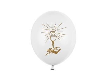 Balony 30 cm, Pierwsza Komunia Święta, Pastel White (1 op. / 6 szt.)