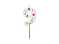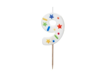 Świeczka urodzinowa Cyfra ''9'', biała konfetti, 5.5cm