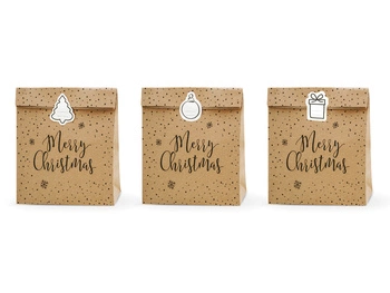 Torebki na prezenty Merry Christmas, kraft, 25x11x27cm (1 op. / 3 szt.)