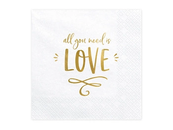 Serwetki - All you need is love, biały, 33x33cm (1 op. / 20 szt.)