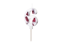 Świeczka urodzinowa Cyfra ''6'', biała z płatkami kwiatów, 8 cm
