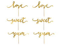 Dekoracje do muffinek Love, złoty, 13cm (1 op. / 6 szt.)