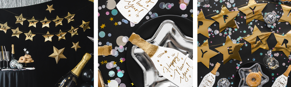 Talerzyki Let's Celebrate, czarny, 23cm (1 op. / 6 szt.)