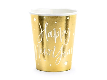 Kubeczki Happy New Year, złoty, 220ml (1 op. / 6 szt.)
