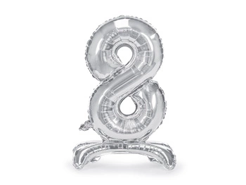 Stojący balon foliowy Cyfra ''8'', 70cm, srebrny