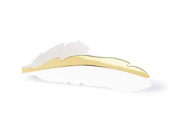 Wizytówki na stół - Piórko, złoty, 10,5x3cm (1 op. / 10 szt.)