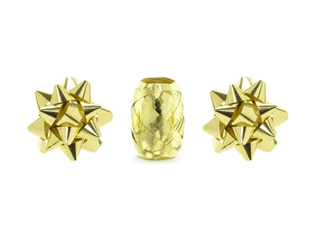 Zestaw wstążek i rozetek, złoty, mix (1 op. / 3 szt.)