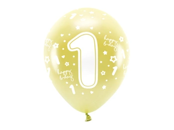 Balony Eco 33 cm, Cyfra '' 1 '', jasny złoty (1 op. / 6 szt.)