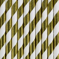 Słomki papierowe, złoty, 19.5cm (1 op. / 10 szt.)