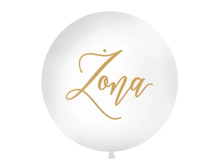 - Balon o średnicy ok. 1 m, biały pastelowy ze złotym nadrukiem Żona, wentyl umieszczony u dołu, do nadmuchania potrzeba 0,4 m3 helu.