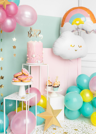 Balon foliowy Chmurka można zawiesić na nitce, przykleić do ściany lub stworzyć z niego część większej girlandy balonowej. Idealnie nadaje się do przygotowania kącika fotograficznego, gdzie dzieci i dorośli mogą robić pamiątkowe zdjęcia. Balon świetnie sprawdzi się również jako prezent-niespodzianka dla najmłodszych, do udekorowania łóżeczka lub strefy zabaw. Dzięki łatwości montażu i efektownemu designowi, balon Chmurka z pewnością zachwyci każdego gościa imprezy.