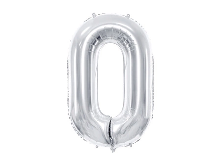 - Balon foliowy metalizowany Cyfra ''0'' w kolorze srebrnym, rozmiar przed napompowaniem ok. 100 cm (39''), rozmiar po napompowaniu ok. 86 cm (34''). Do napomowania powietrzem i helem.
