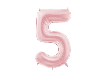 - Balon foliowy matowy Cyfra ''5'' w kolorze jasnego różu, rozmiar przed napompowaniem ok. 100 cm (39''), rozmiar po napompowaniu ok. 86 cm (34''). Do napompowania powietrzem i helem. Zestaw zawiera słomkę.