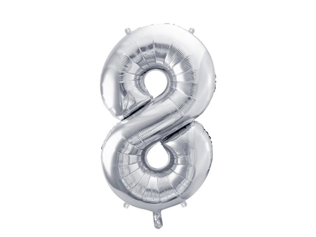 Wyjątkowy balon foliowy cyfra 8 – efektowna dekoracja w kolorze srebrnym