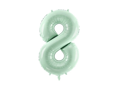 - Balon foliowy Cyfra ''8'' w kolorze zielonym, rozmiar przed napompowaniem ok. 86 cm (34''), rozmiar po napompowaniu ok. 72 cm (28''). Do napompowania powietrzem i helem. Zestaw zawiera słomkę