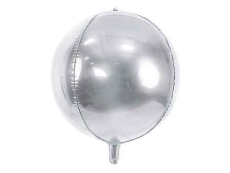 - Balon foliowy metalizowany Kula w kolorze srebrnym, wysokość przed napompowaniem ok. 50 cm (20''), wysokość po napompowaniu ok. 40 cm (16''). Do napompowania powietrzem i helem.