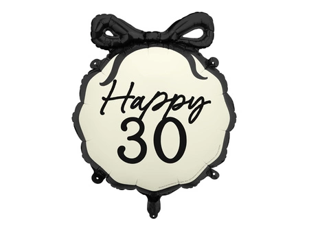 Balon foliowy pastylka Happy ''30'', mix kolorów. Wymiary przed napompowaniem ok. 57,5 x 56 cm (22,5 x 22''), wymiary po napompowaniu ok. 47,5 x 45 cm (18,5 x 17,5''). Do napompowania powietrzem i helem. Zestaw zawiera słomkę.
