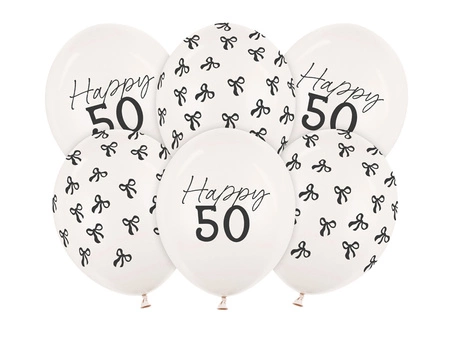 - Balony Strong ''50'' w kolorze Pastel Off-white z nadrukiem, średnica ok. 30 cm. (1 op. / 6 szt.)