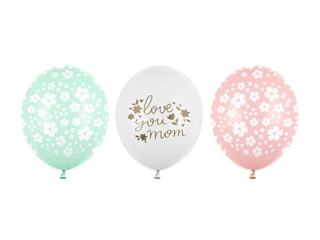 Balony 30 cm, Love you mom, mix (1 op. / 50 szt.)