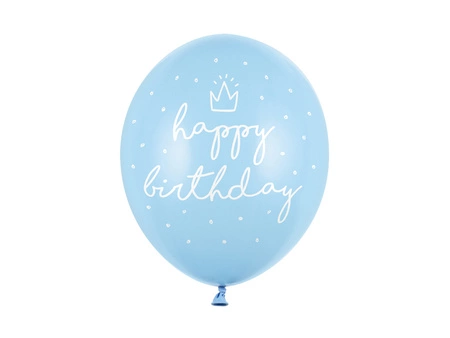 Balony 30cm, happy birthday, P. Baby Blue (1 op. / 6 szt.)