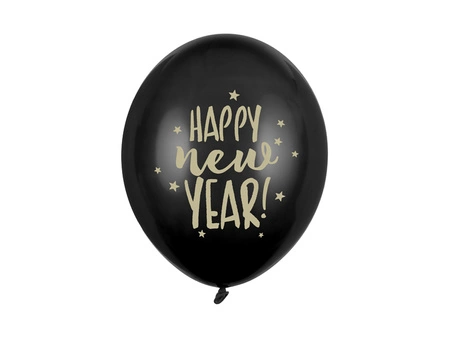 Balony lateksowe Happy New Year w kolorze czarnym – efektowna dekoracja sylwestrowa