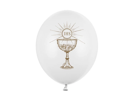 - Balony Strong IHS w kolorze Pastel Pure White z dwustronnym, złotym nadrukiem, średnica 30 centymetrów. (1 op. / 50 szt.)