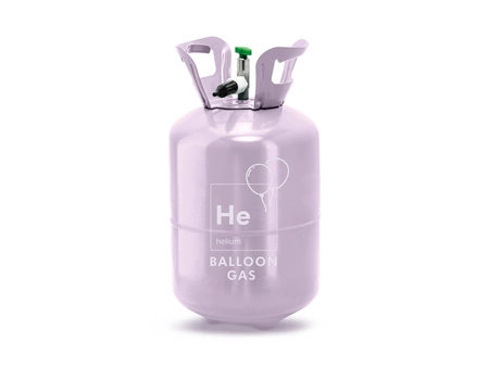 - Butla z helem na 30 szt. balonów w kolorze fioletowym z czarnym nadrukiem, pojemność ok. 0.189 m³.