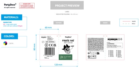 Czapka została wykonana z materiałów przyjaznych dzieciom, które są bezpieczne dla skóry i nie powodują podrażnień. Przed pierwszym użyciem wystarczy zdjąć etykietę oraz elementy towarzyszące, co sprawia, że produkt jest gotowy do natychmiastowego wykorzystania podczas zabawy. Sprawdzi się zarówno podczas codziennych zabaw tematycznych w domu, jak i podczas większych wydarzeń, takich jak szkolne bale przebierańców czy rodzinne imprezy.