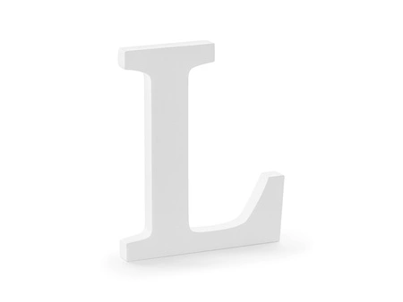 - Litera L wykonana z drewna w kolorze białym, szerokość ok. 16, wysokość ok. 20 cm