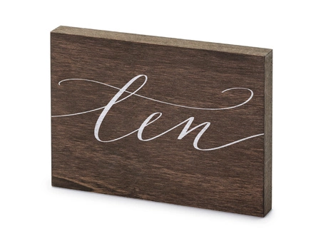- Drewniany numer na stół z białym napisem "Ten"
