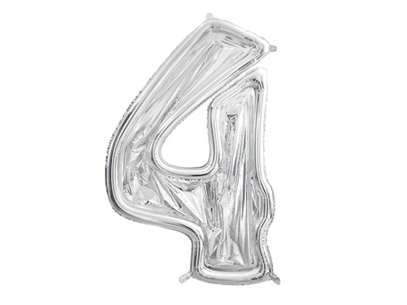 Forma Cyfra ''4'' dla balonów lateksowych, 126cm, srebrne błyszczące