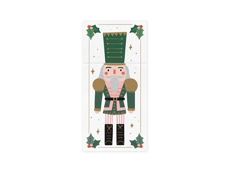 - Serwetki papierowe z kieszonką na sztućce Dziadek do orzechów, mix kolorów, wymiary złożonej serwetki ok. 10 x 20 cm. (1 op. / 6 szt.)