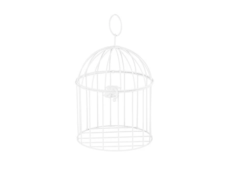 - Metalowa klatka dekoracyjna w białym kolorze, wysokość ok. 24 cm.