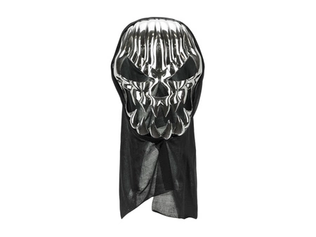 - Maska z kapturem Czaszka w kolorze srebrno-czarnym, wymiary maski ok. 18.5 x 24.5 cm, długość kaptura ok. 43 cm.