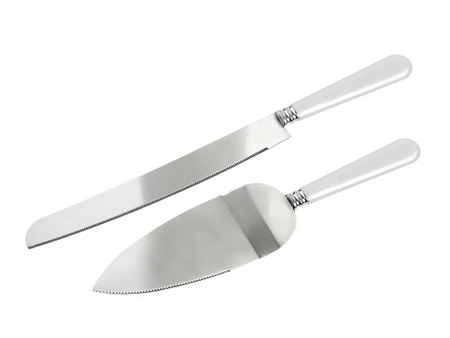 - Nóż i łopatka do ciasta, długość całkowita noża 30,5 centymetra, łopatki 24,5 centymetra, długość rączki 9 centymetrów. (1 op. / 2 szt.)