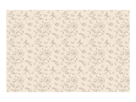 - Jednorazowy, jednostronny, prostokatny obrus o wymiarach 180 x 120 cm w kolorze beżowym z ciemnobeżowymi kwiatami. Obrus wykonany z materiału syntetycznego.