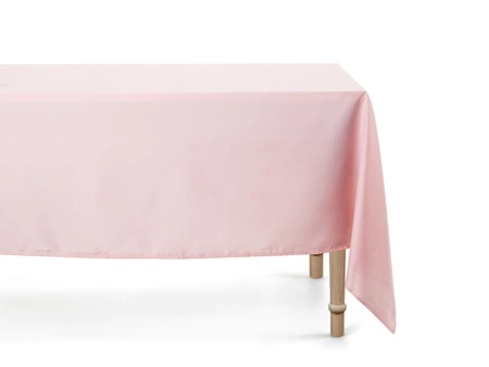 - Obrus na stół z matowego materiału w kolorze brudnego różu, wymiary 180x300 centymetrów.