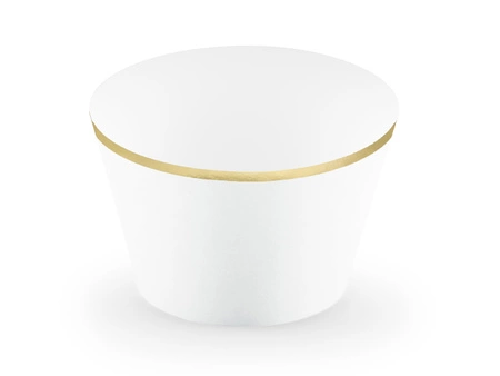 - Papilotki na muffinki Elegant Bliss w kolorze białym ze złotymi metalizowanymi brzegami, wymiary po złożeniu ok. 4,8 x 7,6 x 4,6 cm. (1 op. / 6 szt.)