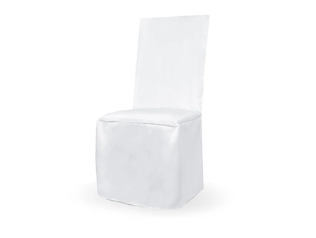 - Pokrowiec z matowej tkaniny w kolorze białym, uniwersalny, bez zakładek. Podane na rysunku wymiary to dł. maksymalne, pokrowce ładnie układają się również na krzesłach mniejszych.