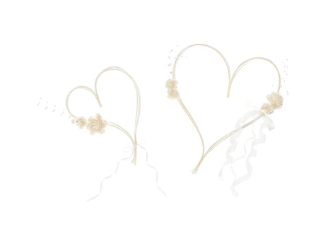- Rattanowe serca z suszonymi bukiecikami w kolorze kremowym, na przyssawkach. Zestaw zawiera serca w rozmiarze: 19 centymetrów i 30 centymetrów. (1 op. / 2 szt.)