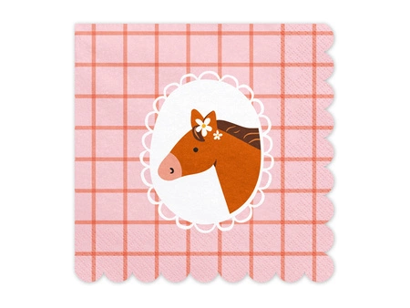 - Serwetki papierowe Koń w kolorze różowym z kolorowym nadrukiem,wymiary po rozłożeniu ok. 33 x 33 cm, wymiary po złożeniu ok. 16.5 x 16.5 cm. (1 op. / 12 szt.)