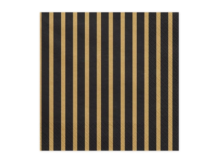 - Serwetki papierowe w kolorze czarnym ze złotymi paskami, wymiary po rozłożeniu ok. 33 x 33 cm, wymiary po złożeniu ok. 16,5 x 16,5 cm. (1 op. / 20 szt.)