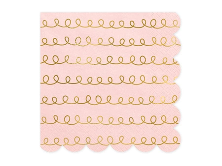 - Serwetki papierowe w kolorze jasnego pudrowego różu ze złotym metalizowanym wzorem szlaczków, wymiary po rozłożeniu ok. 32 x 32 cm, wymiary po złożeniu ok. 16 x 16 cm. (1 op. / 20 szt.)