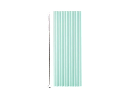 - Słomki plastikowe w kolorze szałwiowym, średnica ok. 7 mm, długość ok. 23 cm. Zestaw zawiera czyścik. Produkt wielokrotnego użytku. (1 op. / 12 szt.)
