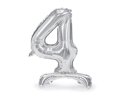 - Metalizowany stojący balon foliowy Cyfra ''4'' w kolorze srebrnym, rozmiar przed napompowaniem ok. 90 cm (35''), rozmiar po napompowaniu ok. 70 cm (27.5''). Do napomowania powietrzem.