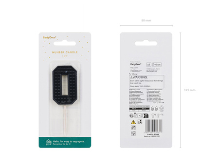 - Świeczka urodzinowa Cyferka 0 we wzór klocka w kolorze czarnym, rozmiar ok. 6 cm.
