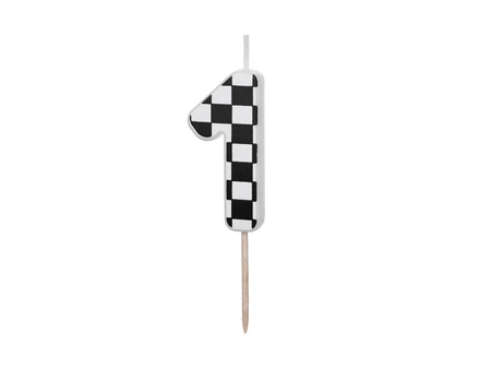- Świeczka urodzinowa Cyferka 1 ze wzorem szachownicy, rozmiar ok. 5.5 cm.