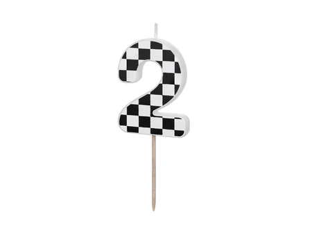 - Świeczka urodzinowa Cyferka 2 ze wzorem szachownicy, rozmiar ok. 5.5 cm.