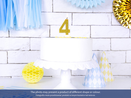 - Świeczka urodzinowa Cyferka 5 w kolorze złotym brokatowym, rozmiar ok. 7 cm.